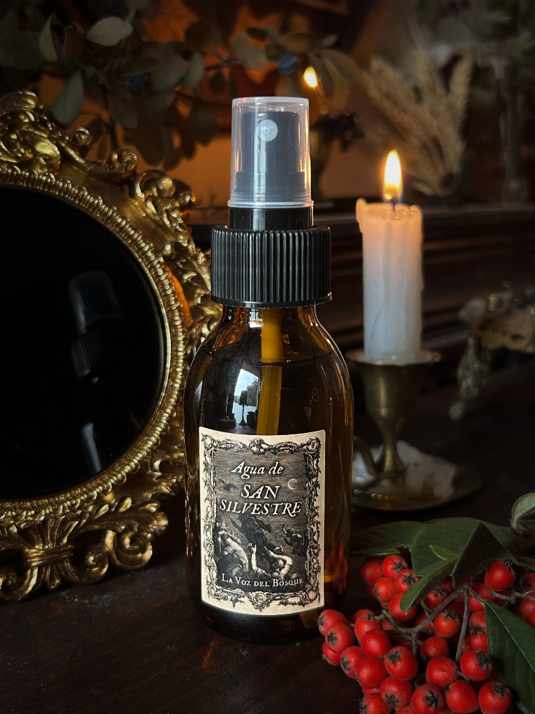La víspera de San Silvestre (31 de diciembre, la última noche del año), es considerada por el folklore como una de las más importantes en el paso de las comitivas espectrales y la gran noche de aquelarre de las brujas. En inspiración a los planos oscuros e inconscientes del sueño, medio atávico para el vuelo del alma, el agua de san Silvestre reúne diversos aliados reconocidos por su virtud onirógena y su capacidad de aflojar el vínculo entre el cuerpo y el ánima, a fin de potenciar las prácticas mágicas oníricas. Puede ser utilizada antes de dormir sobre el practicante, vaporizada en el dormitorio o sobre las sábanas. También puede acompañar en la meditación.