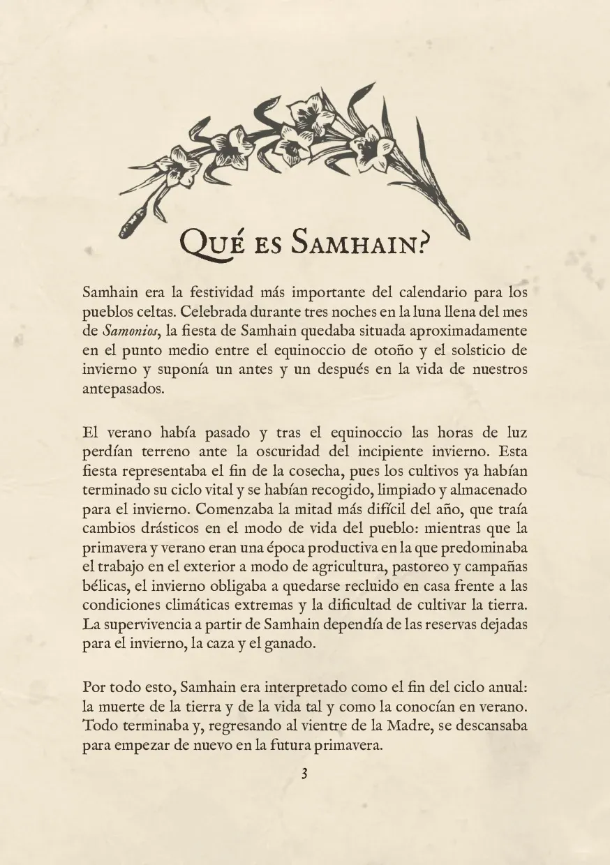 El verano ha llegado a su fin y el ciclo se adentra en la parte más oscura del año. . Samhain honra a los ancestros, marca el final del año celta y abre la puerta a un tiempo de recogimiento y escucha. El librito de Samhain vol. II es una pequeña obra dispuesta para guiar en la celebración, hacer conocer sus aspectos más importantes y, sobre todo, proponer ideas para vivir esta festividad con profundidad. En él se encontrará historia, recetas, rituales, manualidades y, especialmente, reflexiones para adaptar Samhain a la vida moderna y al contexto espiritual contemporáneo. Este librito es complementario al llamado ‘Samhain’; ambos tienen contenido distinto y autoconclusivo, pero se enriquecen mutuamente.